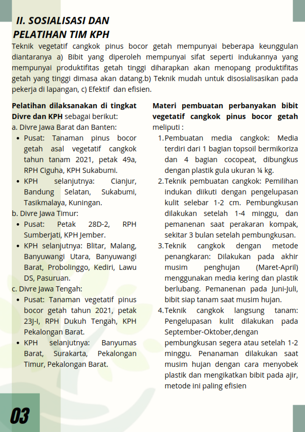 TRANSFER TEKNOLOGI PEMBUATAN BIBIT VEGETATIF CANGKOK PINUS BOCOR GETAH DI KPH