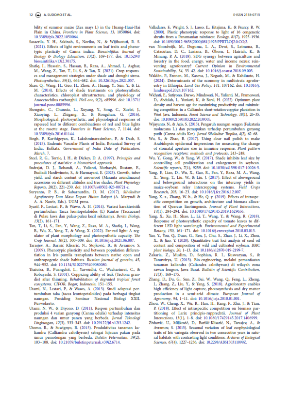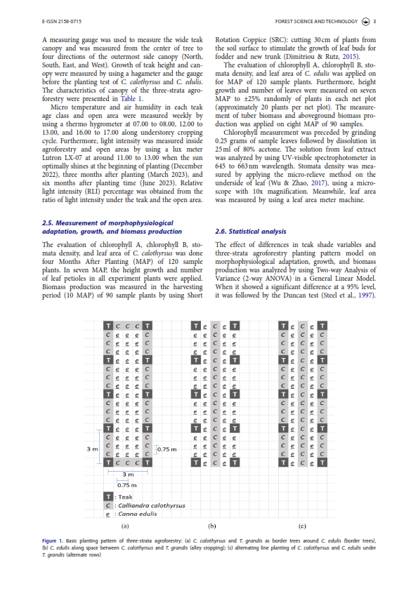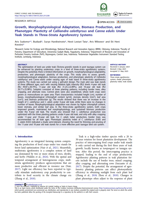 Terus Hijaukan Negeri >> Blog >> GROWTH, MORPHOPHYSIOLOGICAL ADAPTATION, BIOMASS PRODUCTION, AND PHENOTYPIC PLASTICITY OF CALLIANDRA CALOTHYRSUS AND CANNA EDULIS UNDER TEAK STANDS IN THREE-STRATA AGROFORESTRY SYSTEMS