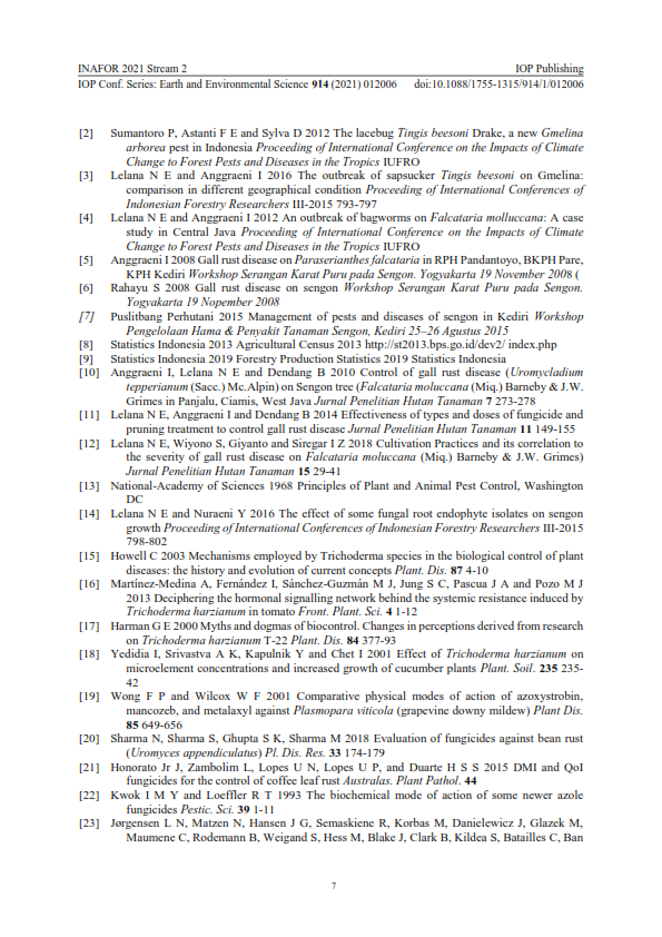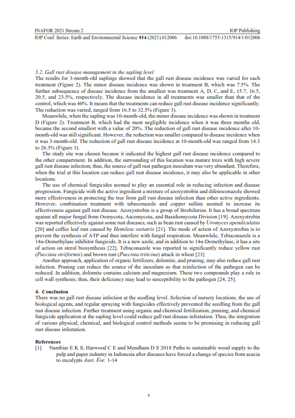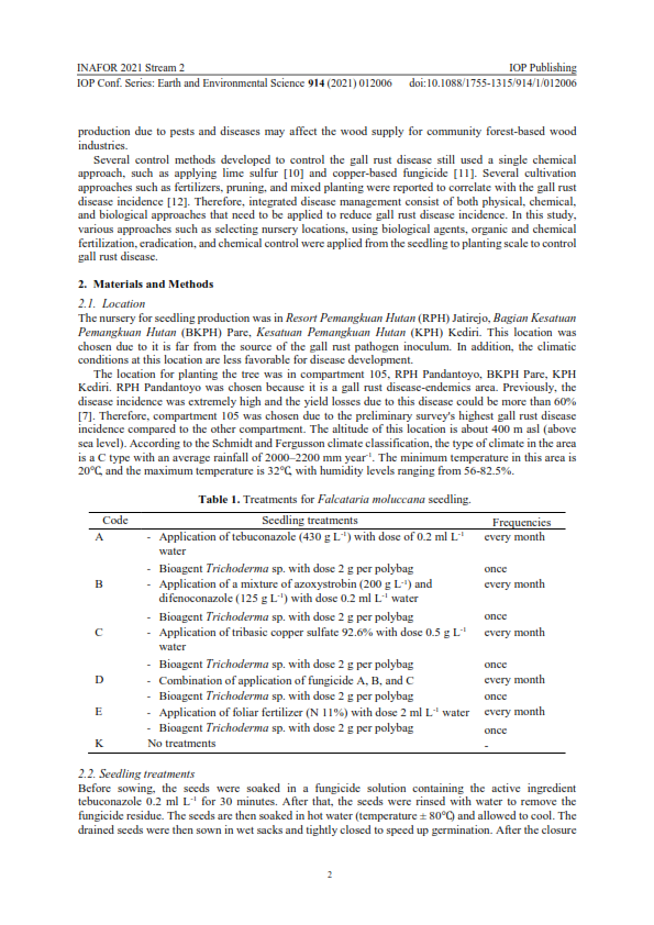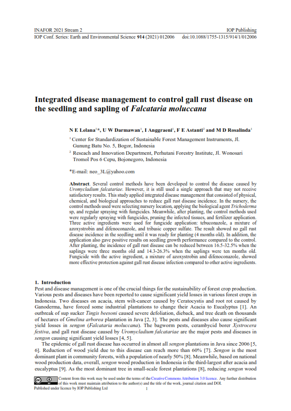 INTEGRATED DISEASE MANAGEMENT TO CONTROL GALL RUST DISEASE ON THE SEEDLING AND SAPLING OF FALCATARIA MOLUCCANA