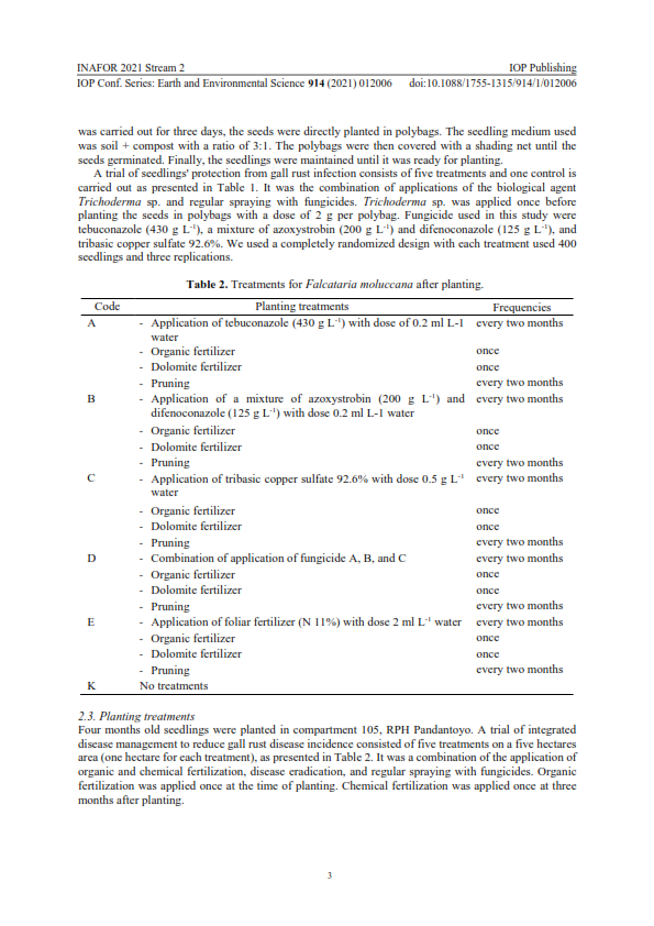 Terus Hijaukan Negeri >> Blog >> INTEGRATED DISEASE MANAGEMENT TO CONTROL GALL RUST DISEASE ON THE SEEDLING AND SAPLING OF FALCATARIA MOLUCCANA