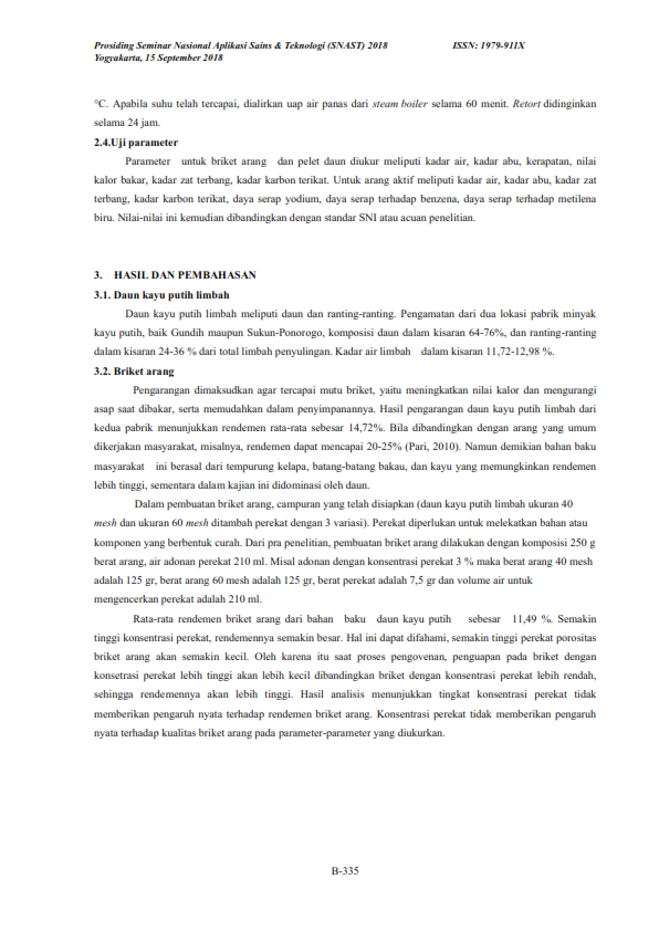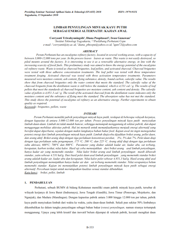 Terus Hijaukan Negeri >> Blog >> LIMBAH PENYULINGAN MINYAK KAYU PUTIH SEBAGAI ENERGI ALTERNATIF: KAJIAN AWAL