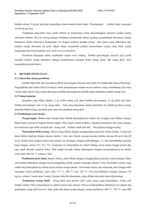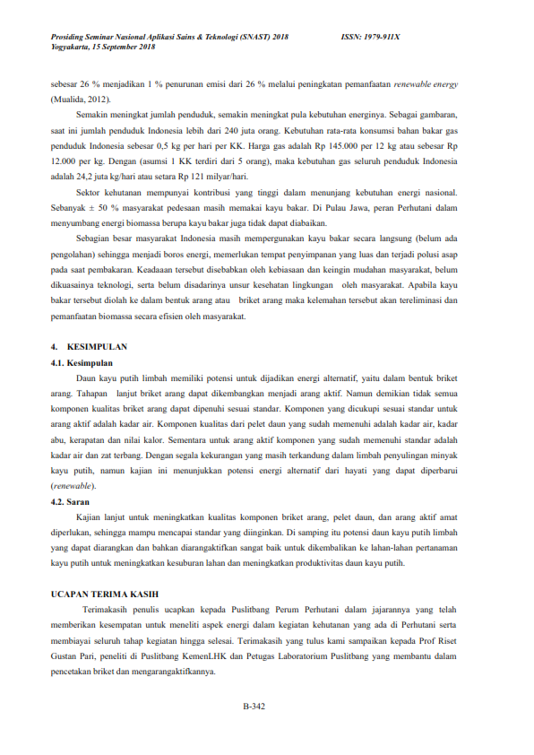 LIMBAH PENYULINGAN MINYAK KAYU PUTIH SEBAGAI ENERGI ALTERNATIF: KAJIAN AWAL