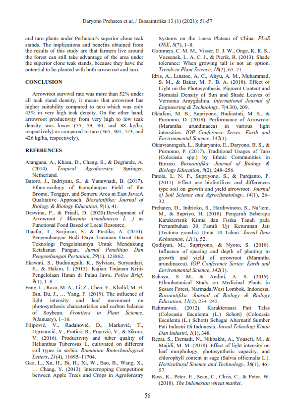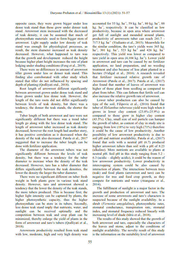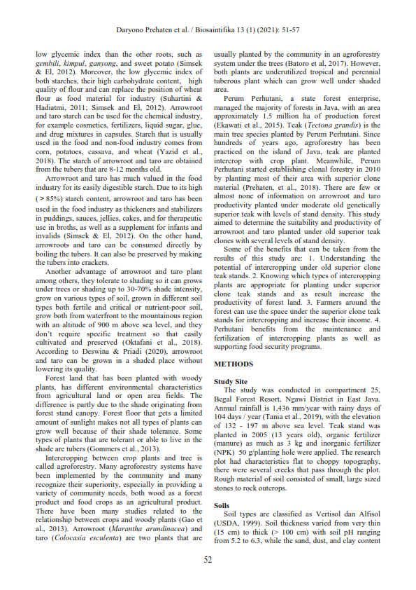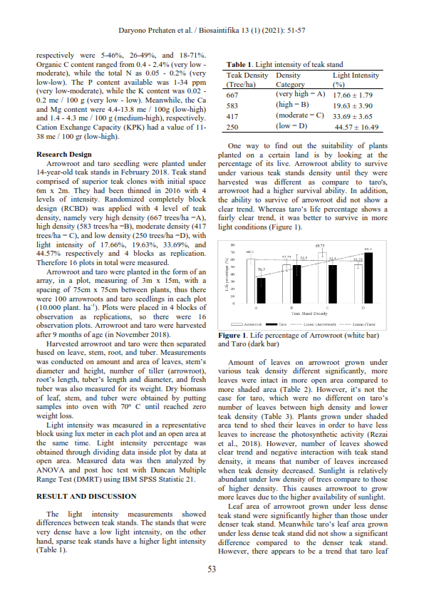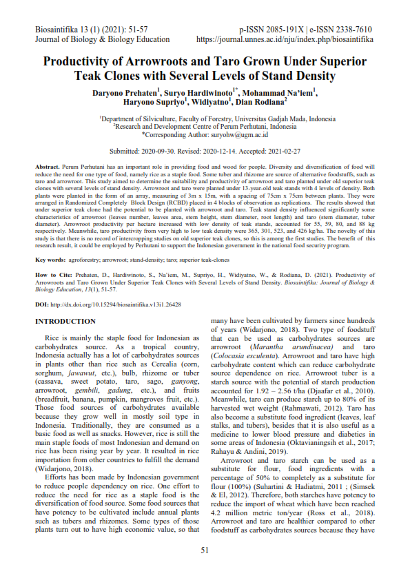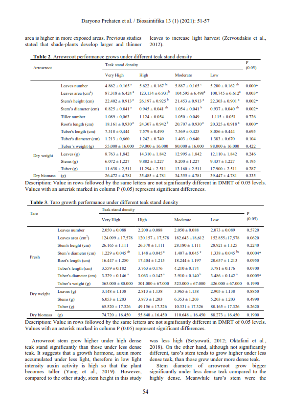 Terus Hijaukan Negeri >> Blog >> PRODUCTIVITY OF ARROWROOTS AND TARO GROWN UNDER SUPERIOR TEAK CLONES WITH SEVERAL LEVELS OF STAND DENSITY