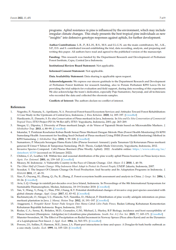 Terus Hijaukan Negeri >> Blog >> THE APPROACH IN SELECTING THE BEST GENETIC RESISTANCE AGAINST INVASIVE APHID FOR INDIGENOUS TROPICAL PINUS MERKUSII JUNGH. ET DE VRIESE IN INDONESIA