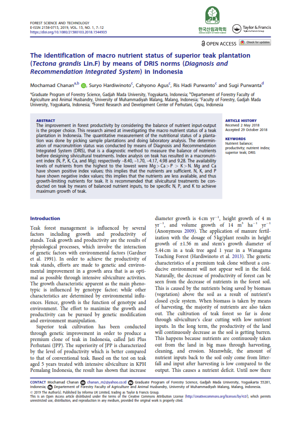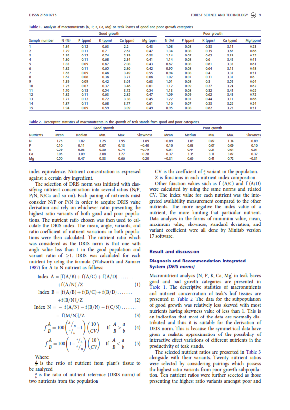 Terus Hijaukan Negeri >> Blog >> THE IDENTIFICATION OF MACRO NUTRIENT STATUS OF SUPERIOR TEAK PLANTATION (TECTONA GRANDIS LIN.F) BY MEANS OF DRIS (DIAGNOSIS AND RECOMMENDATION INTEGRATED SYSTEM) IN INDONESIA.