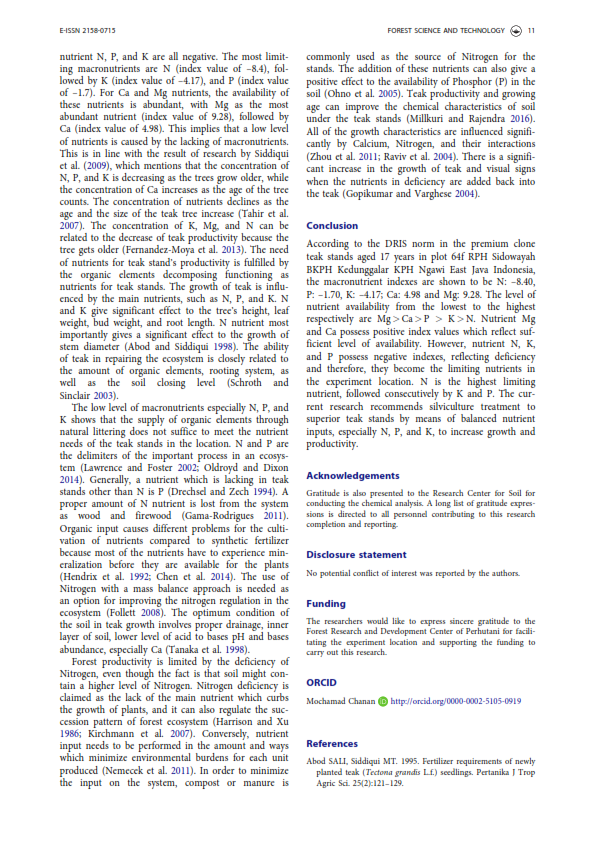 THE IDENTIFICATION OF MACRO NUTRIENT STATUS OF SUPERIOR TEAK PLANTATION (TECTONA GRANDIS LIN.F) BY MEANS OF DRIS (DIAGNOSIS AND RECOMMENDATION INTEGRATED SYSTEM) IN INDONESIA.