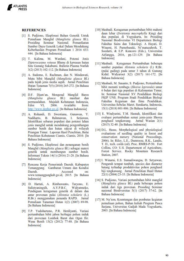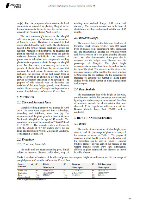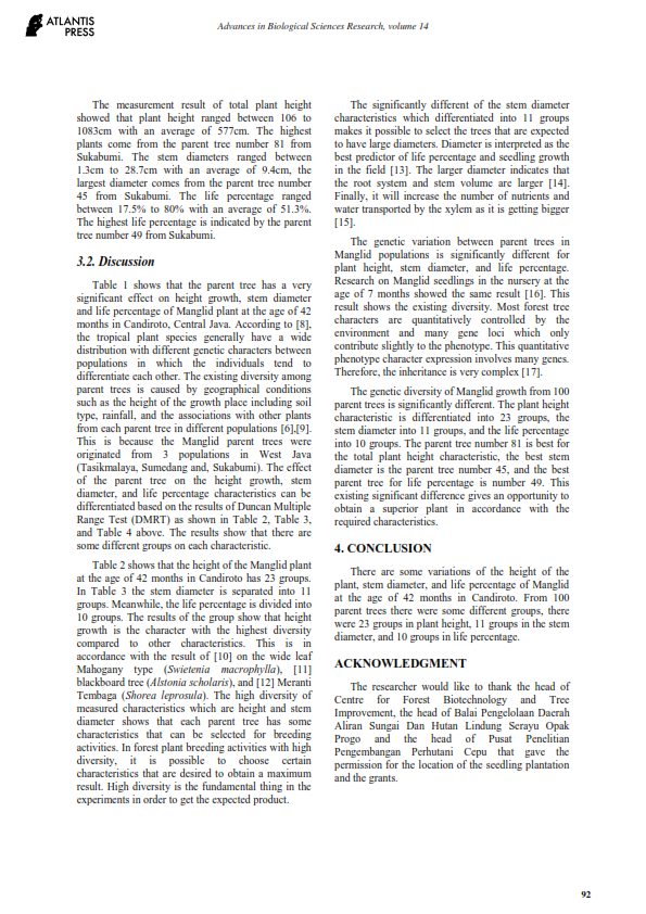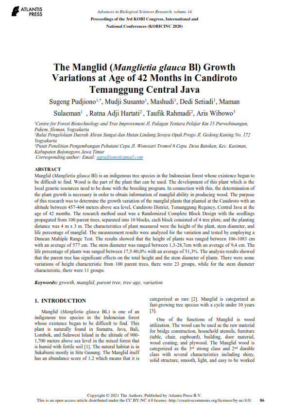 THE MANGLID (MANGLIETIA GLAUCA BL) GROWTH VARIATIONS AT AGE OF 42 MONTHS IN CANDIROTO TEMANGGUNG CENTRAL JAVA