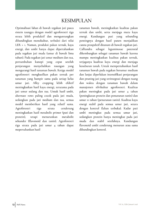 Untuk Mendukung Kedaulatan Pangan dan Kayu Energi di Bawah Tegakan Jati Pasca Tumpangsari