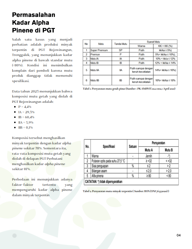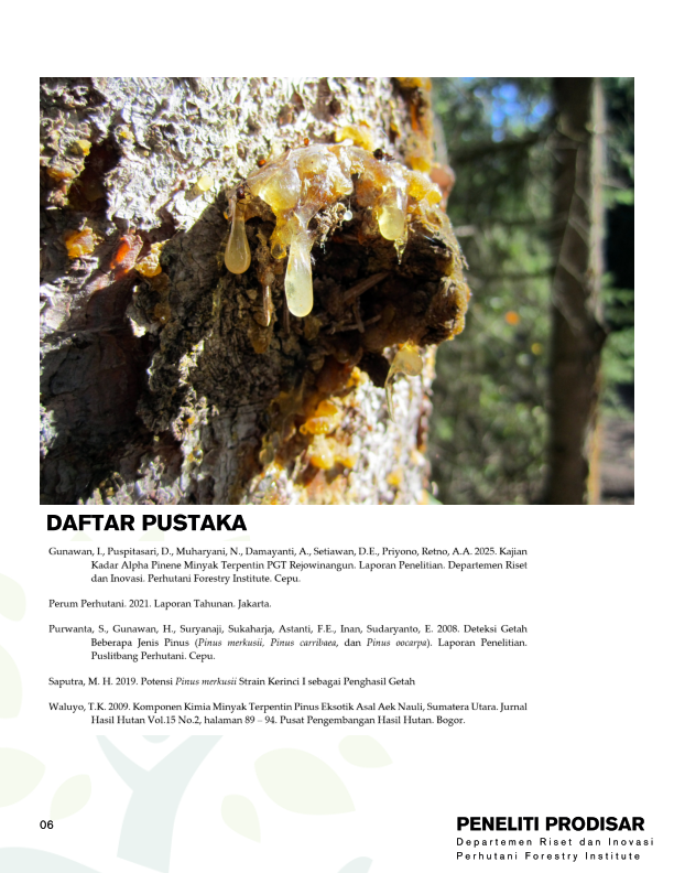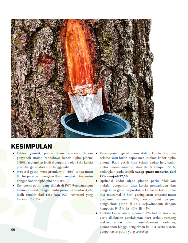 • OPTIMASI KADAR ALPHA PINENE MINYAK TERPENTIN DARI GETAH PINUS MERKUSII