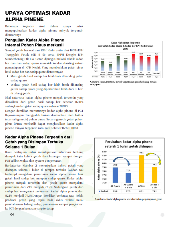 OPTIMASI KADAR ALPHA PINENE MINYAK TERPENTIN DARI GETAH PINUS MERKUSII