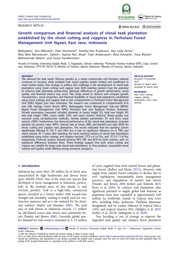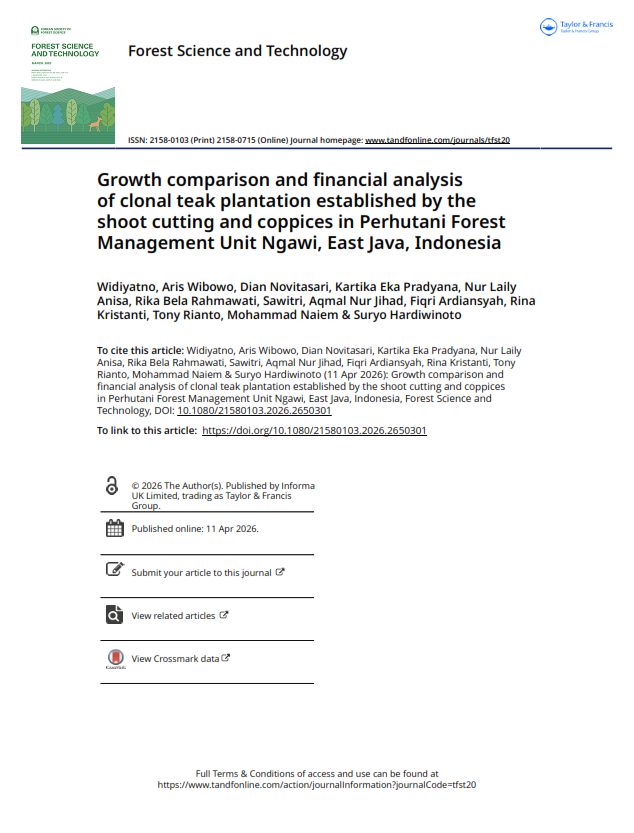 Terus Hijaukan Negeri >> Blog >> GROWTH COMPARISON AND FINANCIAL ANALYSIS OF CLONAL TEAK PLANTATION ESTABLISHED BY THE SHOOT CUTTING AND COPPICES IN PERHUTANI FOREST MANAGEMENT UNIT NGAWI, EAST JAVA, INDONESIA
