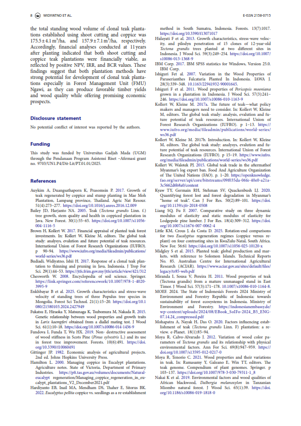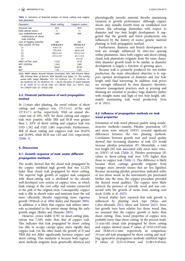 • GROWTH COMPARISON AND FINANCIAL ANALYSIS OF CLONAL TEAK PLANTATION ESTABLISHED BY THE SHOOT CUTTING AND COPPICES IN PERHUTANI FOREST MANAGEMENT UNIT NGAWI, EAST JAVA, INDONESIA
